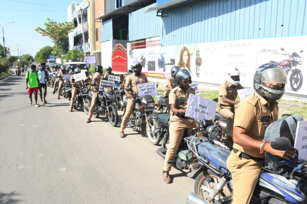 The rally was flagged off by the District Superintendent of Police, Mr. Adarsh Basera, IPS. Starting from Palakkarai, the rally passed through the Old Bus Stand area and concluded near the Government Hospital.
