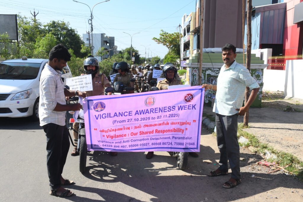 On behalf of the Perambalur District Police, a “Vigilance Awareness Week” two-wheeler rally was successfully organized on 30.10.2025 to promote awareness against corruption and bribery.
