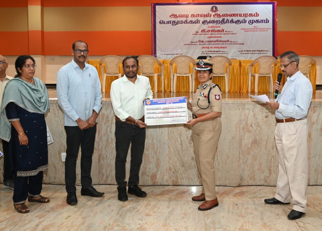 Several residents under the Avadi Police Commissionerate limits had lost large sums of money after being deceived by online fraudsters through fake stock trading platforms and part-time job offers. Based on the complaints submitted to Avadi Police Commissioner Thiru. K. Shankar, IPS, swift action was initiated.