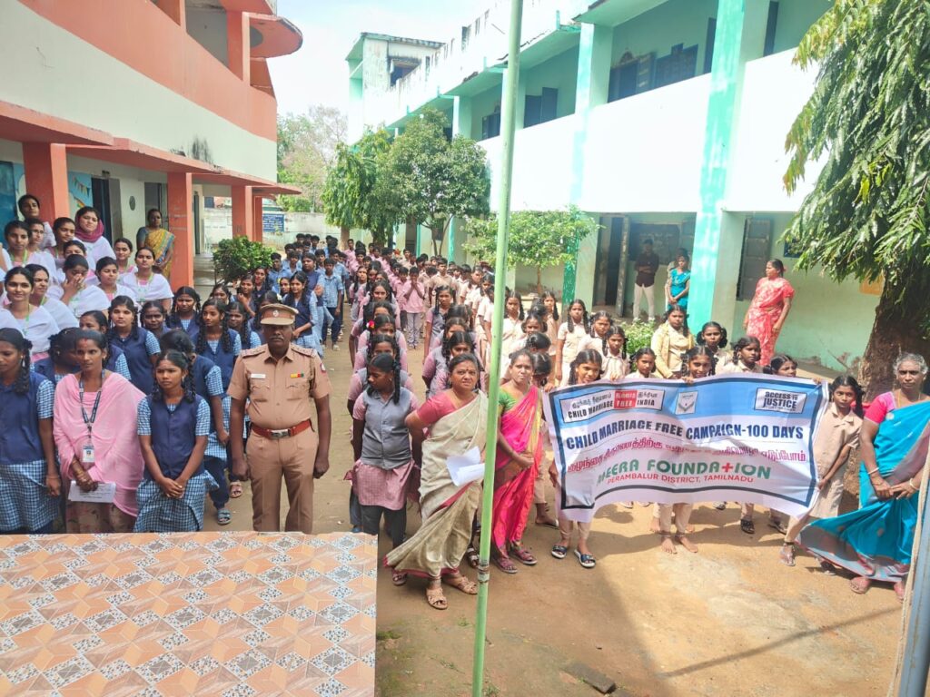An awareness programme on preventing child marriage was conducted for students of the Government Higher Secondary School at Kalarampatti village in Perambalur district. The event aimed to educate students on the dangers and social impact of child marriage.