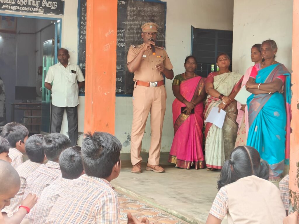 The programme was held on the instructions of Mr. Adarsh Basera, IPS, Superintendent of Police, Perambalur district. Assistant Headmaster Mr. Senthilkumar, Special Sub-Inspector Mr. Maruthamuthu from the Protection of Women and Children Wing, One Stop Center Case Worker Mrs. Soundarya, Meera Foundation (NGO) representative Mrs. Arunadevi, along with school teachers participated in the event.