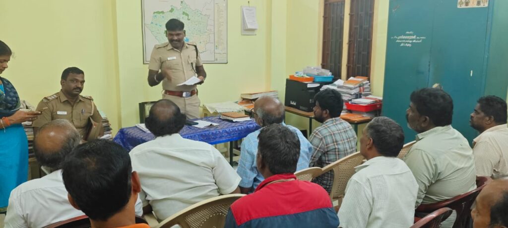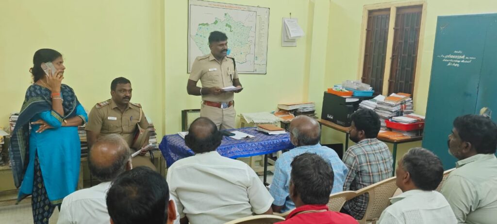 In view of the upcoming Diwali festival, a consultative meeting was held on 15.10.2025 at 5:00 PM at the Thittagudi Sub-Divisional Office, under the leadership of Thiru. G. Parthiban, Deputy Superintendent of Police, Thittagudi Sub-Division. The meeting focused on ensuring safety measures among firecracker shop owners operating within the limits of Thittagudi Sub-Division police stations.