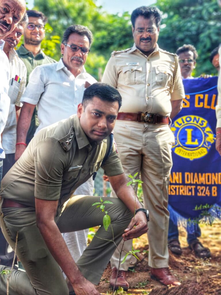 In a special plantation ceremony held today, Palani DSP Dhananjayan participated and planted sandalwood saplings, symbolizing the importance of green efforts. Following this, Inspector Manimaran planted karungali (blackwood) trees, while Sub-Inspector Vijay planted neem saplings. Various other species of trees and herbs were also planted during the event.
