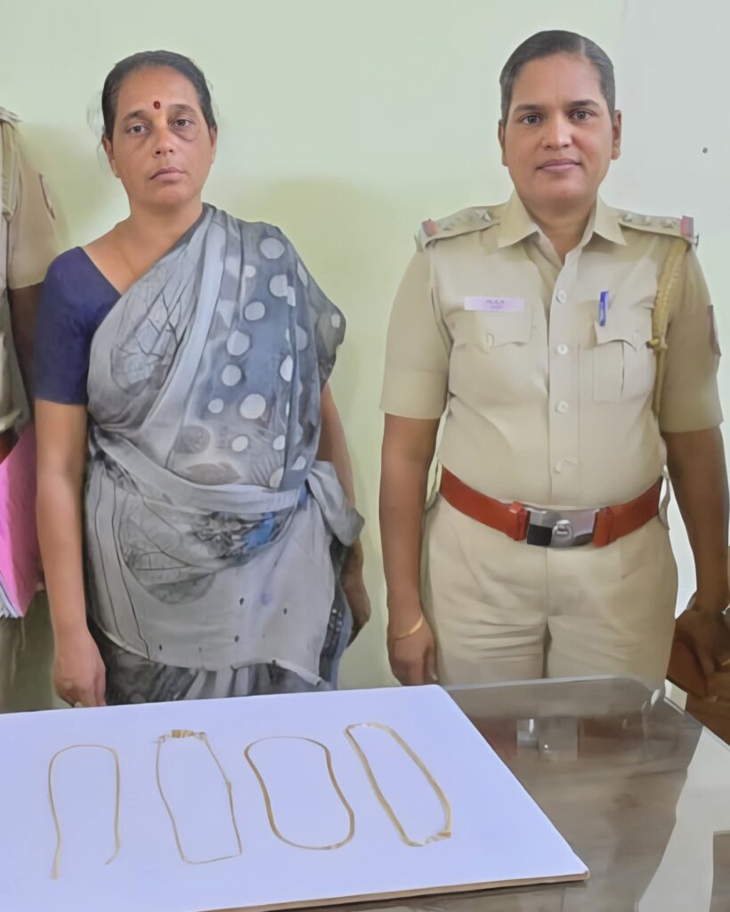 The police recovered 16.5 sovereigns of gold from her possession. Latha was arrested, charged, and produced before the court, after which she was remanded to the Vellore Central Women’s Prison.