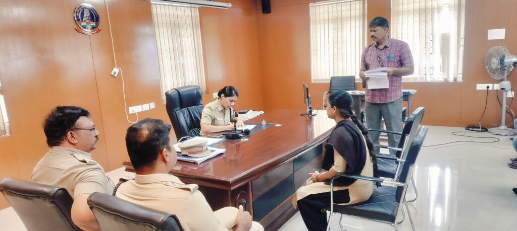 திருப்பத்தூர் மாவட்ட காவல்துறையில் பொதுமக்கள் அளித்த புகார் மனுக்கள் மீது காவல்நிலையங்களில் முறையான தீர்வு மற்றும் மனுக்களின் மீதான நடவடிக்கைகளில் திருப்தி பெறாத புகார்தாரர்களுக்கு மாவட்ட காவல் கண்காணிப்பாளர் ஷ்ரேயா குப்தா,இ.கா.ப., அவர்களின் தலைமையில் மக்கள் குறை தீர்வு கூட்டம் மாவட்ட காவல் அலுவலகத்தில் நடைபெற்றது.